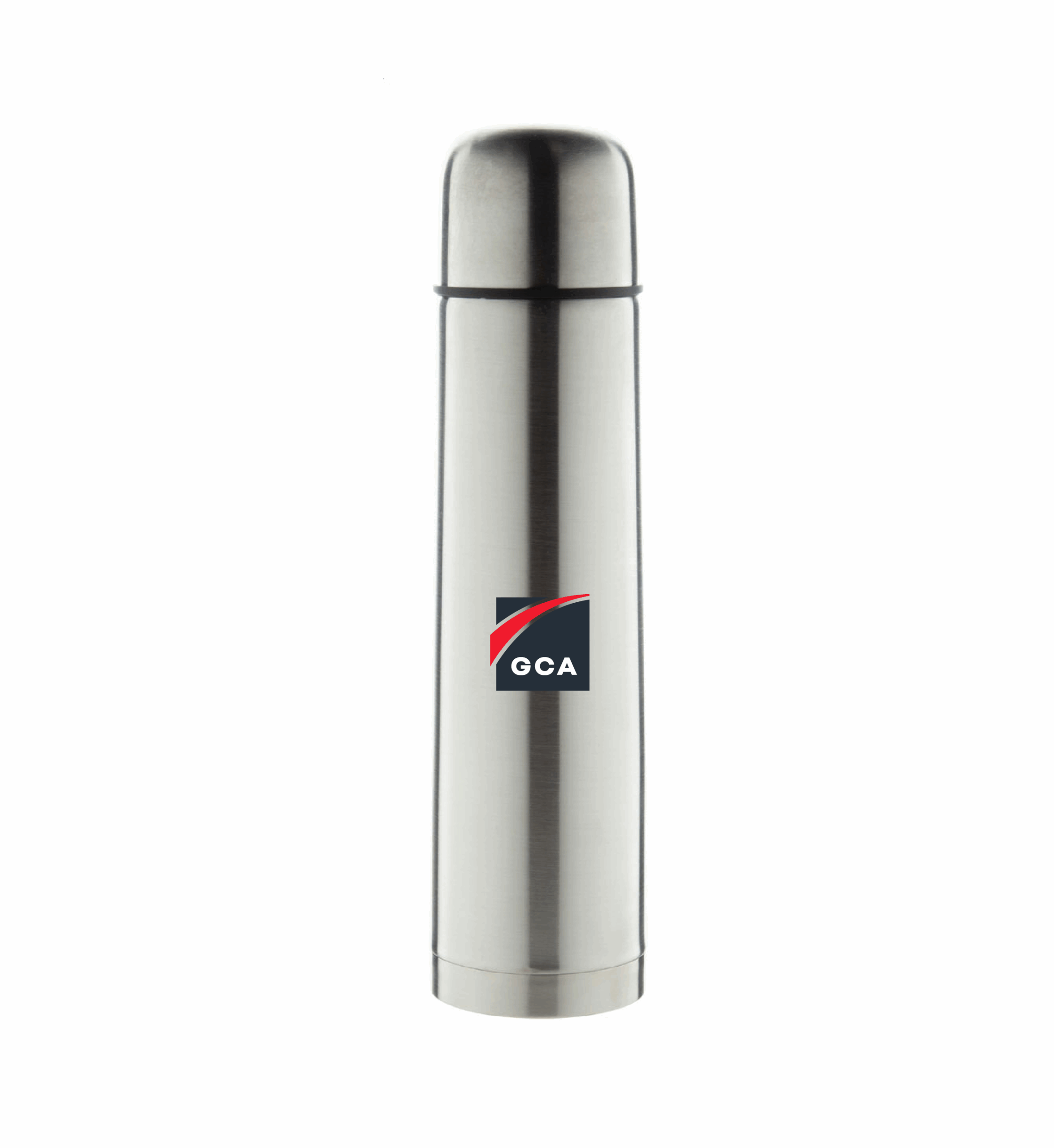 Bouteille isotherme à double paroi et isolation par le vide en acier inoxydable d’une contenance de 1L. La gourde est étanche et maintien la température du liquide pendant 6 h. Ne convient pas au nettoyage au lave-vaisselle.